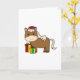 Carte Cheval avec chapeau de Père Noël et cadeaux