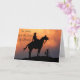 Cette carte de sympathie, pour la perte d'un cheval, comporte la silhouette d'un cheval, de son cavalier et d'un cactus isolé en silhouette de coucher du soleil. Cette carte est conçue pour que vous la customisiez avec le nom du cheval. Ajoutez votre texte à l'intérieur de cette carte de grief de cheval pour le personnaliser. Gardez l'énonciation ou mettez dans vos propres. Pour une carte de sympathie équine ou pour s'ajouter à un cadeau de mémoire de cheval.
