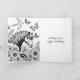 Joli cheval blanc fantaisiste dans un lot de fleurs sauvages colorés. A l'intérieur, il y a une page de coloriage. Carte d'anniversaire personnalisée.