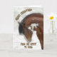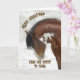 Cheval Mustang Américain Sauvage, Thunder frolonne à travers la neige sur cette belle carte de Noël. Le texte de couverture dit Joyeux Noël, de notre tenue à la vôtre. Customisez cette carte à votre préférence. La signature imprimée facultative doit être changée en nom, ou elle peut être supprimée complètement pour que vous puissiez signer vos cartes à la main.