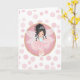 Ce dessin présente une fée aux cheveux noirs mignonne avec une robe rose, une baguette magique et des ailes, volant sur un fond de points roses super mignon.