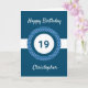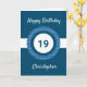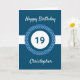 Une carte bleue personnalisée de 19ème anniversaire, que vous pouvez facilement personnaliser avec son nom sur le devant de la carte. Vous pouvez également personnaliser le message de la carte intérieure si vous le souhaitez. Cette carte personnalisée de 19ème anniversaire pour lui ferait un grand souvenir.