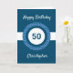 Une carte bleue personnalisée de 50ème anniversaire, que vous pouvez facilement personnaliser avec l'âge dont vous avez besoin avec son nom sur le devant de la carte. Vous pouvez facilement personnaliser le message de la carte intérieure si vous le souhaitez. Cette carte personnalisée de 50ème anniversaire pour lui ferait un souvenir unique.