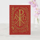 Carte Chi Rho Alpha Omega Symbole Doré sur Fond Rouge