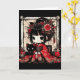 Carte Chibi Kimono Girl Black Cat Flowers Japanese Art W