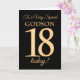 Une carte d'anniversaire chic 18ème pour un "Très Spécial Godson", avec un numéro 18 composé de numéros à effet or et le mot "Godson", à effet or, sur un arrière - plan noir. Le message intérieur, que vous pouvez modifier si vous le souhaitez, est "Joyeux anniversaire"