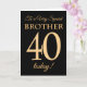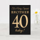 Une carte d'anniversaire chic 40e pour un "Very Special Brother", avec un numéro 40 composé de numéros à effet or et le mot "Brother", à effet or, sur un arrière - plan noir. Le message intérieur, que vous pouvez modifier si vous le souhaitez, est "Joyeux anniversaire"