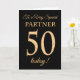 Une 50ème carte d'anniversaire chic pour un "Very Special Partner", avec un numéro 50 composé de numéros à effet or et le mot "Partner", à effet or, sur un arrière - plan noir. Le message intérieur, que vous pouvez modifier si vous le souhaitez, est "Joyeux anniversaire"