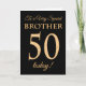 Une carte d'anniversaire chic 50e pour un "Very Special Brother", avec un numéro 50 composé de numéros à effet or et le mot "Brother", à effet or, sur un arrière - plan noir. Le message intérieur, que vous pouvez modifier si vous le souhaitez, est "Joyeux anniversaire"