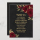Carte de numéro de table chic et élégant avec de belles fleurs bordeaux et quelques élégants feuilles d'or. POUR PLUS DE PRODUITS CORRESPONDANTS cliquez sur la collection ci-dessus ou contactez-moi.