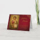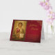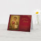 Deep, rich red background with a decorative gold frame corner and an icon of Jesus Christ holding the Gospels on this Orthodox Christian birthday card. Customize with all of your personal details and preferences.
