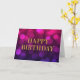 Chic carte de voeux d'anniversaire avec les mots "Joyeux anniversaire" en faux feuille d'or contre magenta bokeh lumières motif arrière - plan. Pour ajouter du texte à l'intérieur de la carte, cliquez sur le bouton "Personnaliser". *Veuillez noter que le filigrane Zazzle qui apparaît dans l'aperçu du zoom n'apparaîtra PAS sur le produit imprimé final. © Bois de rose et agrumes