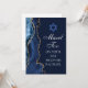 Un bleu nuit élégant et une agate dorée ornent le côté de cette carte de félicitations moderne pour une fête de Bat Mitzvah. Mazel Tov ! Personnalisez-la sous l'étoile de David. Carte de vœux parfaite pour une famille juive chic et élégante célébrant l'appel d'une fille à la Torah.