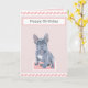Cette belle carte de voeux modifiable présente mon portrait d'un joli Bulldog français gris-gris mignon contre un arrière - plan rose. Parfait pour les dames de votre vie.