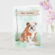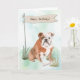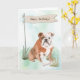 Avec son visage ridé signature et sa personnalité adorable, cette carte d'anniversaire anglaise Bulldog est aussi charmante que la race elle-même. Installé dans une scène extérieure aquarellée d'herbe et de ciel, ce chiot bas se dresse fièrement sous une bannière rustique de style drapeau. Une façon amusante et légère de célébrer la journée spéciale de n’importe quel amoureux des chiens!