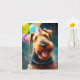 Carte Chien Airedale avec casquette d'anniversaire et ba