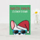 Si vous connaissez quelqu'un qui aime les bulldogs français et qui a un bon sens de l'humour, cette drôle de carte de Noël française est idéale pour leur envoyer pendant les vacances festives. Le dessin présente une illustration de dessin animé d'un bulldog français de couleur blanche portant un chapeau de Père Noël rouge et des lunettes de soleil avec la mention "Père Noël Paws est venu’ to town" écrit sur le devant. Le texte à l'intérieur dit "Je vous souhaite un Noël pawsome" mais peut être changé à votre goût. Ce design est également disponible avec différents bulldogs français colorés.