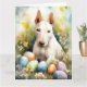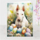 Carte Chien Bull Terrier avec œufs de Pâques en vacances