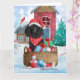 Carte Chien Caniche Dans Maison de chien de Noël enneigé