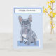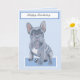 Cette belle carte de voeux modifiable présente mon portrait d'un joli Bulldog français gris-gris mignon contre un arrière - plan bleu. Parfait pour les amateurs de français.