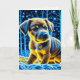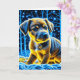 Un beau laboratoire de chiot jouant dehors sur une carte de Noël festive de Noël enneigée de nuit.