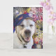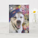 Carte Chien d'anniversaire patriotique et feux d'artific