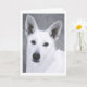 Beau chien de berger allemand blanc sur une carte de voeux. Délivrance de soutien WGSD.
