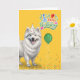 Des voeux d'anniversaire ennuyeux et tardifs n'avaient jamais l'air si mignon que ce chien Eskimo américain dans un humour casquette de fête et amoureux des chiens idiot.
