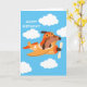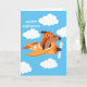 Imaginez envoyer cette carte de vœux à votre petit garçon aviateur. La conception présente un ami chien poilu aux commandes d'un avion lumineux et coloré, volant à travers un ciel rempli de nuages blancs et duveteux. À l'intérieur, il y a un message amusant et sincère. Personnalisez-le instantanément avec le nom et le message de l'enfant.