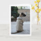 Carte de vœux Chien en manteau. Vous pouvez facilement personnaliser ce produit gratuitement si vous souhaitez ajouter du texte ou changer la couleur de l'arrière-plan.