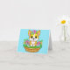 Design printemps et Pâques avec un mignon chiot de corgi gallois dans un panier avec des fleurs.