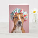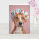 Chien portant un casquette de douche à imprimé fleuri. Le texte peut être modifié.