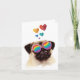 Carte Chien Pug avec coeurs Saint-Valentin