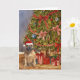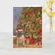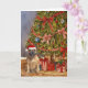 Cette carte de Noël présente un portrait aquarelle d'un taureau français de renom portant un chapeau de Père Noël assis sous un sapin de Noël.