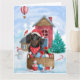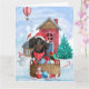 Une idée de cadeau de Noël parfait pour vos amis qui aiment les chiens, Un chien mignon assis dans la neige à côté de l'arbre de Noël et de la maison de chien est un cadeau indispensable pour vous ou vos amis ce Noël.