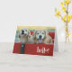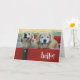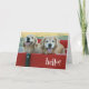 Faites savoir à quelqu'un que vous pensez d'eux avec cette carte de voeux mignonne ! Design présente une photo de deux chiens de repérage dorés souriants qui sont dehors dans un wagon en bois rouge. Le texte à l'avant dit "bonjour", tandis que le texte à l'intérieur personnalisable dit "pensez à vous".