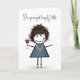 Mignonne figurine avec basket, robe jean bleu, cheveux, collier de perle, et un verre de vin rouge pour l'anniversaire. Tout le texte peut être modifié.