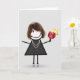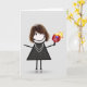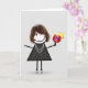 Mignonne figurine avec cheveux, baskets, collier de perle, et robe de pois tenant une pagaie flamboyante. La couleur Arrière - plan peut être modifiée. Tout le texte est modifiable.