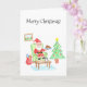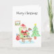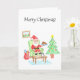 Don't let the kid's coloring art style fool you, this cute card can be given to anyone, young or young-at-heart. It features Santa Claus enjoying a plate of cookies and taking a much-needed rest before setting toys under a Christmas tree. All text can be changed by the buyer; just follow the "Personalize this template" link. AI-generated by IveyCottage.