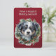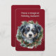 La façon la plus agréable d'envoyer des voeux de Noël à vos amis et votre famille. Un petit visage de chiot au milieu d'une couronne de Noël avec un message sur le dos.