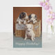 Carte d'anniversaire inspirée d'un tableau d'animaux de compagnie de l'artiste autrichien Carl Reichert. Trois adorables petits chiots (beagle ?), deux avec vue sur un panier et le troisième assis devant. N'oubliez pas de customiser le texte sur le papier qui est joint au panier (Hi Jennifer).