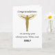 Ce symbole médical de chiropraticien représente les soins et l'expertise des patients qui se rendent sur le terrain. Célébrez le gain du manteau blanc avec ce symbole avec des ailes dorées et le corps humain dans un ton assorti. Customisez ceci avec le nom de l'école pour une carte de félicitations vraiment personnelle dans ce domaine médical exceptionnel. (Le regard de parties scintillant d'or sur les ailes est numériquement créé et seulement simulé pour donner l'effet de l'or.)