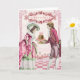 Ici, une femme du XVIIIe siècle, peut-être Marie Antoinette, accepte un gâteau au chocolat d'un beau monsieur. Une carte d'anniversaire Marie Antoinette parfaite pour l'amoureux du chocolat.