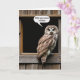 Chouette barrée dans la fenêtre de la grange rustique avec bulle vocale pour avoir plus d'anniversaire. Tout le texte peut être modifié.