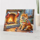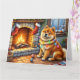 Carte Chow Chow Sitting Fireplace with Christmas Lights