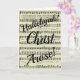 Cette carte de voeux de vacances contient les mots "Hallelujah! Christ Arose !" sur un ancien arrière - plan de partitions de la chanson chrétienne Christ Arose. L'intérieur de la carte a Luke 24:6 avec un espace pour vous d'ajouter un message personnel. Donnez ce beau hymne à vos proches pendant que vous réfléchissez à la mort et à la résurrection de Jésus et que vous fêtez la saison de Pâques.
