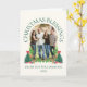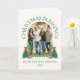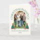 Looking for a family photo Christmas greeting card with fun festive elements? This design shows CHRISTMAS BLESSINGS in stylish green typography, arched above a CUSTOMIZABLE PHOTO where you can upload your photo. At the bottom there are Christmas elements, such as Christmas trees, greenery and coquette bows, and below that you can PERSONALIZE by adding your family name and the year or you can add/replace with a Christmas Bible verse or text. Personalize your message on the inside or leave as is, with its Christian blessing, and just add your name.