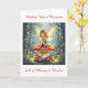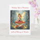 A pretty .little fairy sitting atop a whimsical mushroom covered in Christmast lights and surrounded by gifts. Inside is a sweet holiday poem with a cottage core Christmas vibe.
