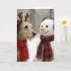 Carte Christmas Irish Wolfhound Gazing at a Cute Snowman