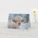 A shaggy, adorable Highland calf stands in the snow, peeking out from beneath its long bangs. With snow gently falling, this charming country scene is a perfect way to share Season's Greetings this Christmas.